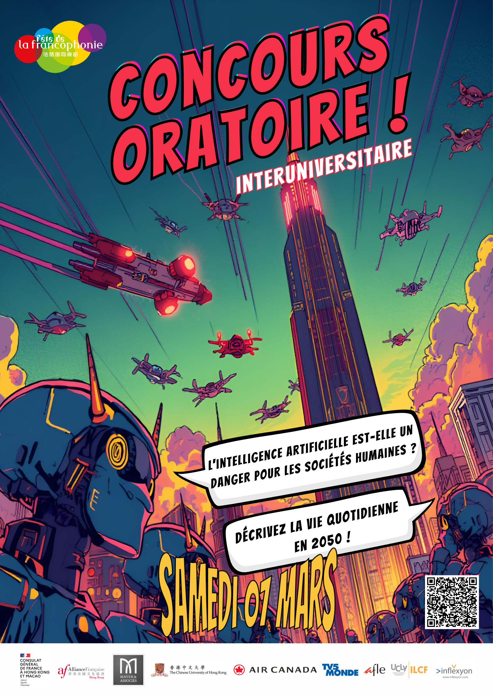 Le concours oratoire interuniversitaire, destiné aux apprenants de français des universités de Hong Kong et Macao aura lieu le samedi 07 mars 2026 à l’Université Chinoise de Hong Kong. Le concours oratoire a pour ambition de faire rayonner la langue française et la francophonie.
