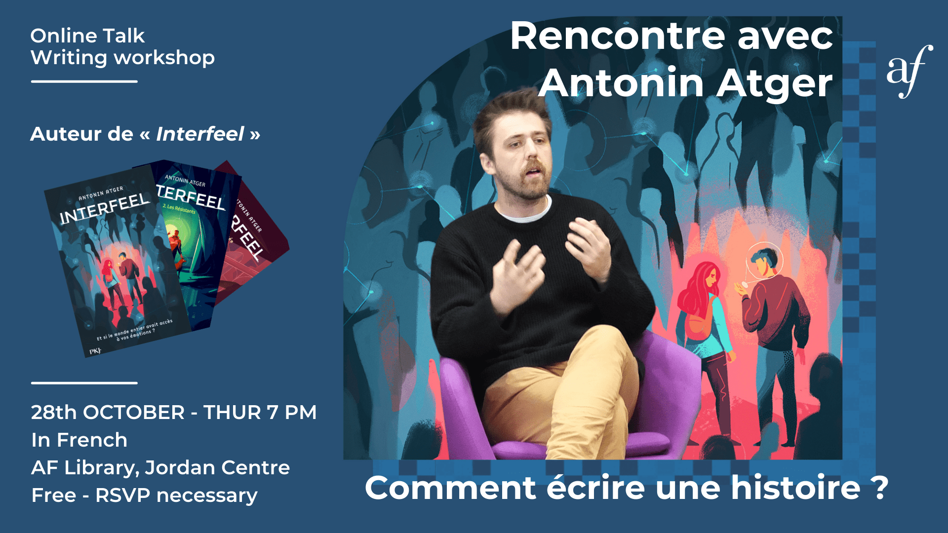 Tout d'abord, Antonin Atger évoquera son travail en tant qu'écrivain ainsi que le circuit du livre en France. Puis, prenant exemple sur des récits célèbres tels que Harry Potter, il analysera les principaux procédés qui sous-tendent un grand nombre d'histoires, mettant en évidence les raisons pour lesquelles elles nous passionnent tant. Enfin, il offrira au public des outils d'écriture et partagera ses conseils et astuces : comment se lancer, comment dépasser ses craintes et blocages afin de mettre en intrigue ses propres idées.