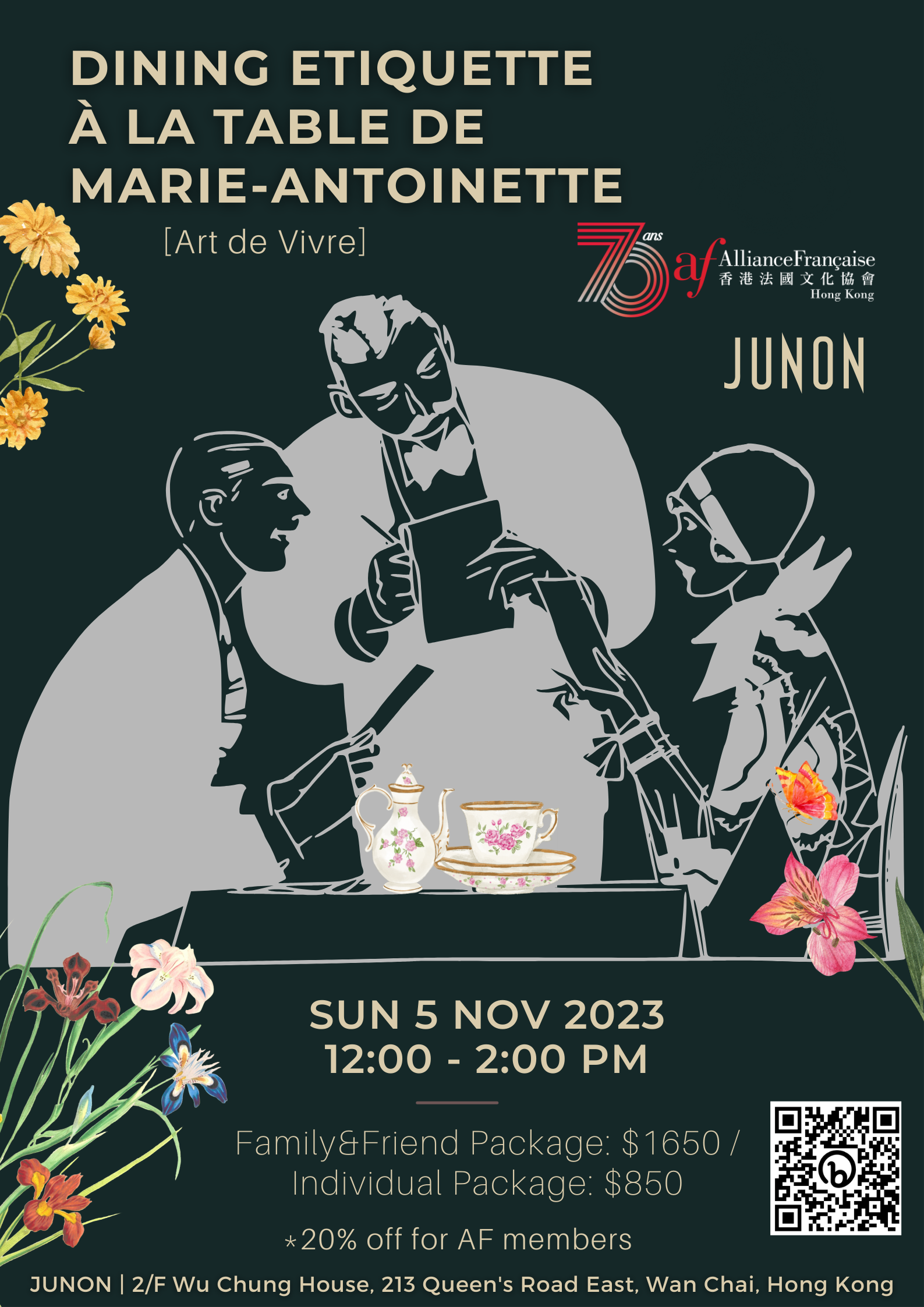 Join us for an afternoon at the 'Table of Marie Antoinette' and learn the etiquette and history of dining like royalty. Our second workshop with Junon promises to be a delicious and informative experience for all, adult, teens and kids alike. Come and enjoy a full-course meal with us!