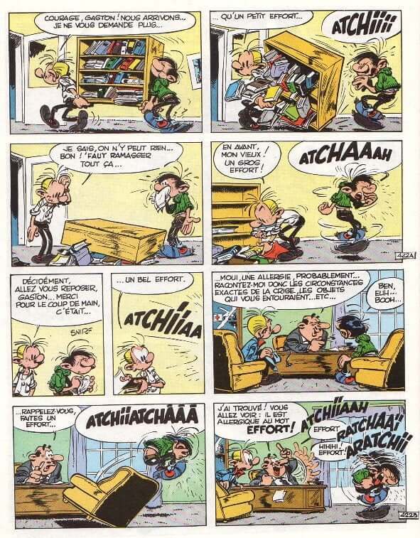 Gaston Lagaffe Published in Le Journal de Spirou, gaston has nothing of a hero and is certainly the laziest comic character. Although he makes many blunders, he is very inventive .