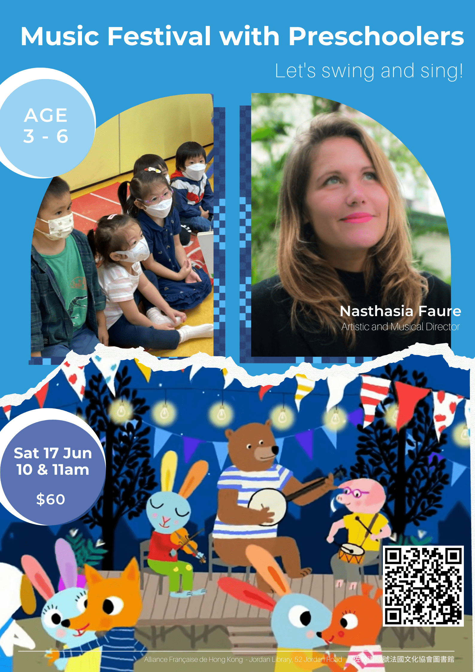 On the occasion of the World Music Day (la Fête de la musique), we will have the honor to have Artistic and Musical Director Nasthasia Faure to lead the performance at Alliance Française. Dear parents, come with your kids and be a part of this joyful celebration!